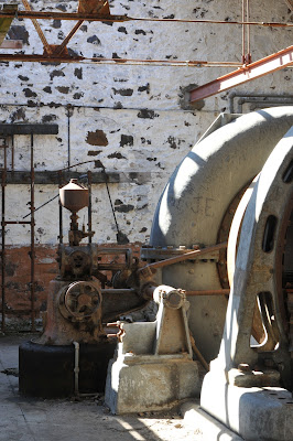 Inside are the remains of the old Pelton water wheel turbines, the speed governors (just to the left of the turbine housing), and the generator. Almost all of the equipment has been eviscerated of their innards, like the copper windings that lined the stators and rotors of the generator (seen below).